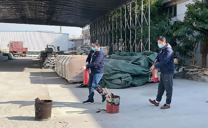 在應(yīng)急集合點(diǎn),大家認(rèn)真聆聽(tīng)滅火器正確使用方法,并現(xiàn)場(chǎng)體驗(yàn)了如何使用干粉滅火器撲滅火源。