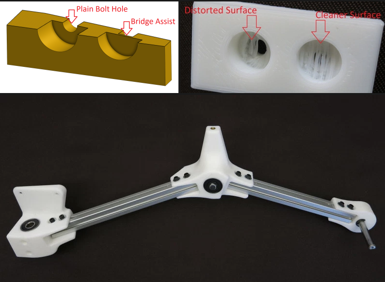 還有一點需要考慮的是,當(dāng)螺栓孔不能很好地與印刷床對齊時,會突出。我們可以通過創(chuàng)建覆蓋螺栓孔的薄層(2-3層高度厚)來幫助我們的打印機(jī)橋接奇怪的螺栓頭表面,該螺栓孔可以在用于其目的之后通過鉆機(jī)清理。與典型的打印支持解決方案相比,這些打印機(jī)更容易拆卸并消耗更少的材料。