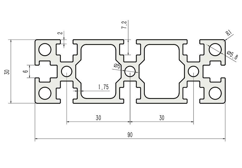 JL-6-3090G,6mm 槽寬工業(yè)鋁型材系列