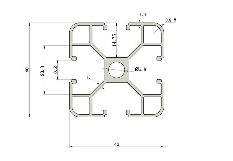 適用于應力及強度較大的框架組合結(jié)構(gòu),它的外型采用圓角過渡,表面經(jīng)過陽極氧化處理,高雅美觀并抗腐蝕,它通常采用M8X20高強度專用螺栓加彈性扣件的內(nèi)部連接方式,堅固而又可靠,是工業(yè)框架應用較為廣泛的型材之一。