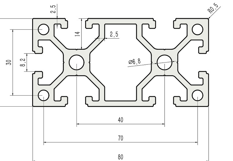 適用于應(yīng)力及強度較大的框架組合結(jié)構(gòu),它的外型采用圓角過渡,表面經(jīng)過陽極氧化處理,高雅美觀并抗腐蝕,它通常采用M8X20高強度專用螺栓加彈性扣件的內(nèi)部連接方式,堅固而又可靠,是工業(yè)框架應(yīng)用較為廣泛的型材之一。
